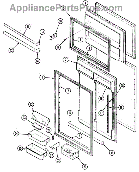 This door bar shelf support end cap can be used on both the right and left hand on many Maytag refrigerator and freezer doors. Color: white. Measures about 1-1/2 inches high by 3 inches deep.