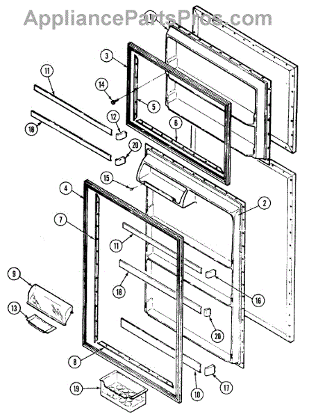 This door bar shelf support end cap can be used on both the right and left hand on many Maytag refrigerator and freezer doors. Color: white. Measures about 1-1/2 inches high by 3 inches deep.