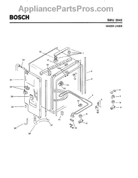 Replace your dishwasher's worn, cracked, or leaking hose. This water supply tube connects internal components and may need replacement if damaged or missing.
