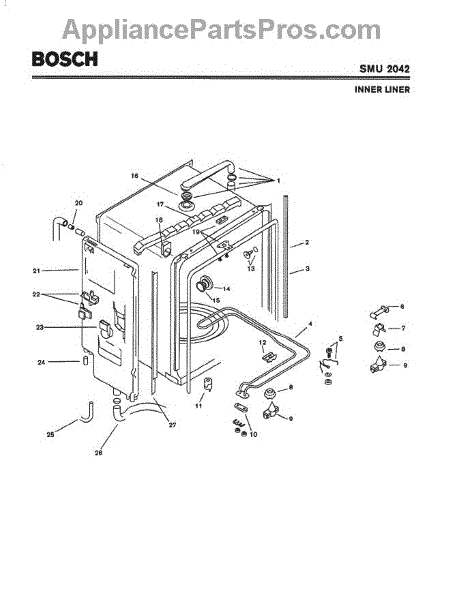 Replace your dishwasher's worn, cracked, or leaking hose. This water supply tube connects internal components and may need replacement if damaged or missing.