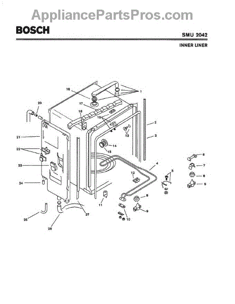 Replace your dishwasher's worn, cracked, or leaking hose. This water supply tube connects internal components and may need replacement if damaged or missing.