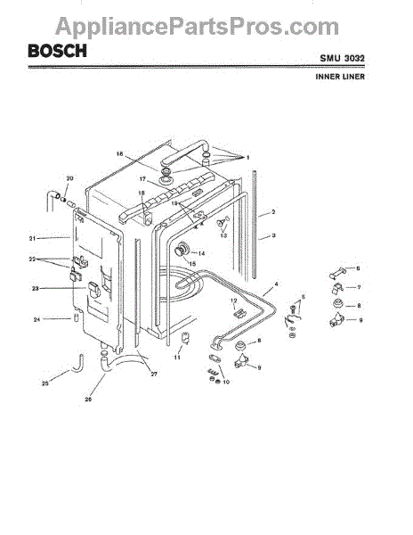 This inlet tube assembly routes incoming water from the dishwasher fill valve into the tub so the washer can fill and wash properly. Replaces a worn or cracked tube to stop leaks and restore normal fill behavior. What it does