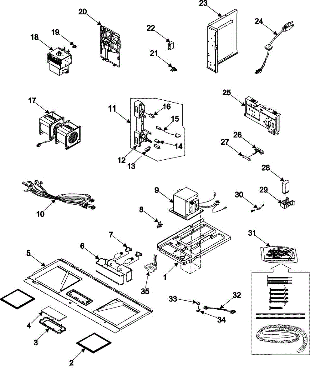 Wire harness assembly that connects electrical components inside your microwave. Replace if wires are damaged, connectors are loose, or harness is worn.