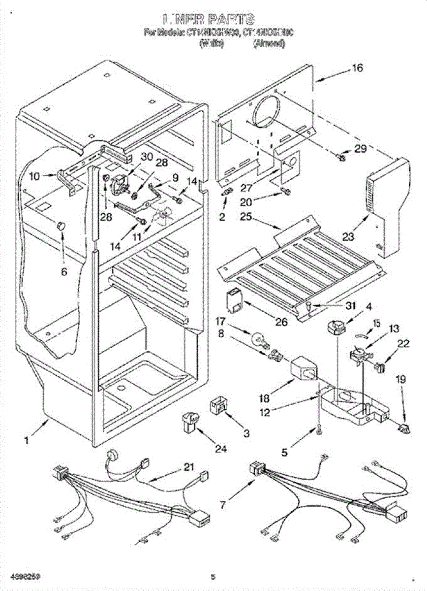 This freezer wire harness links the refrigerator's control system to components inside the freezer compartment. Replacing a compromised harness restores reliable electrical connections and can resolve intermittent or dead freezer functions caused by burned, broken, or corroded wiring.