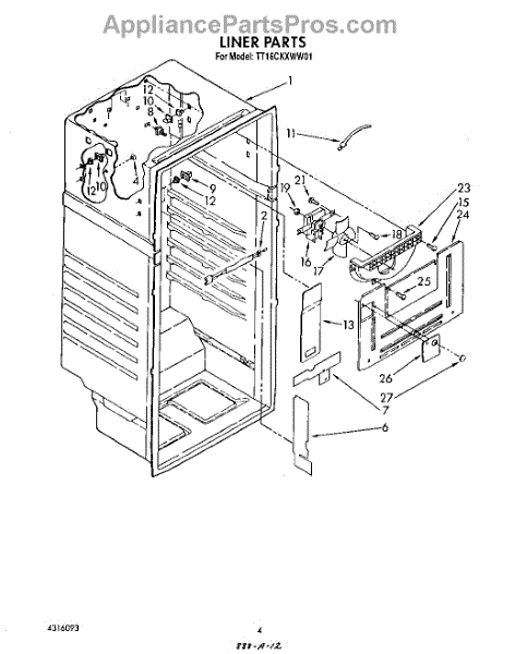 Parts for Whirlpool TT16CKXWN01: 03 - Liner Parts