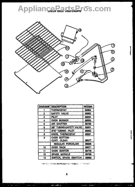 Parts for Amana RKD394: 03 - Lower Oven Components Parts
