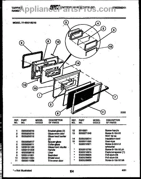 Parts for Frigidaire 77-4957-23-10: 03 - Lower Oven Door Parts