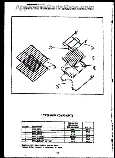 Parts for Amana EHD397: 03 - Lw Oven Elements & Internal Oven Acs Parts