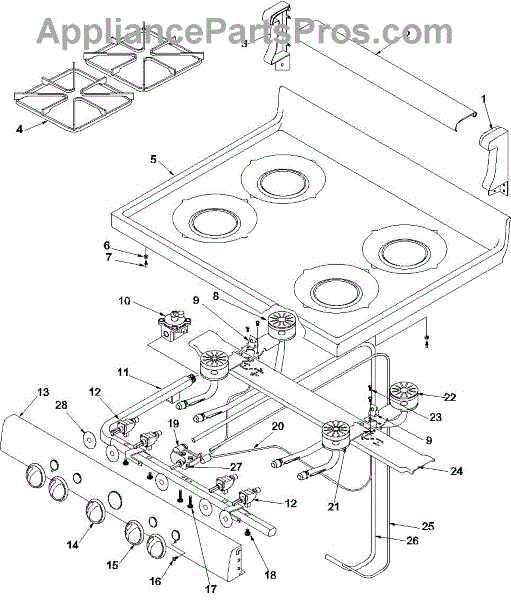 Fastening screw for securing components inside appliances. Replaces lost, stripped, or damaged screws during repairs or part installations.