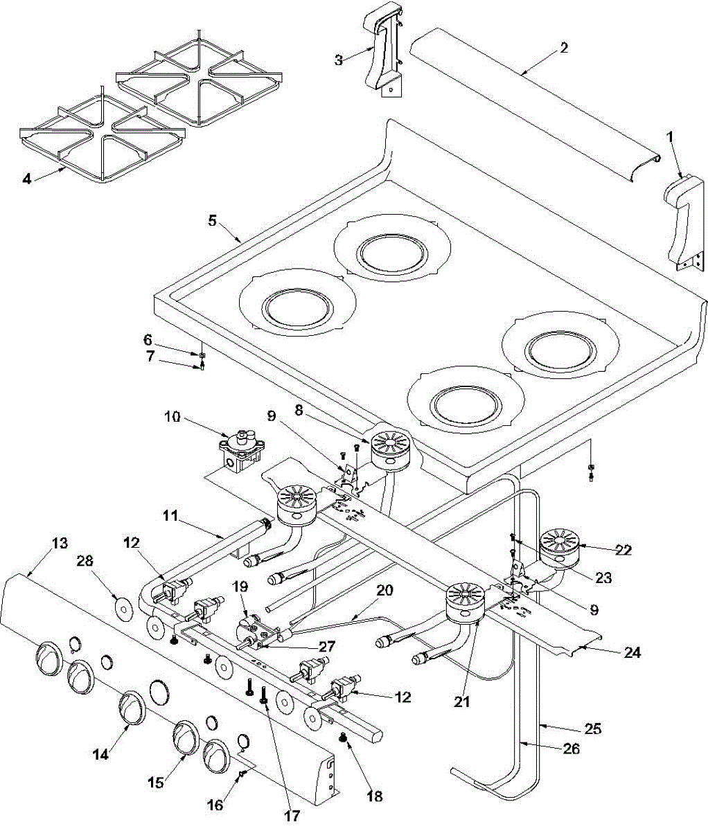 Mounting screw secures panels, brackets, and trim to the appliance frame. Replace if screw is stripped, missing, or damaged to restore secure fastening.