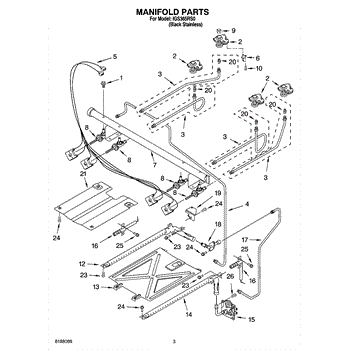 Replacement oven bake burner for gas ranges with direct spark ignition. Distributes gas evenly under the oven floor. Replace if cracked, corroded, or damaged.