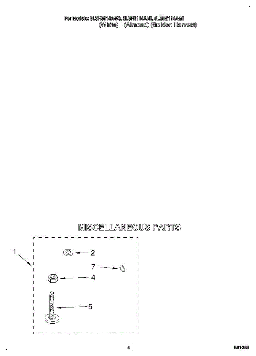 Parts for Whirlpool 8LSR6114AW0: 03 - Miscellaneous Parts