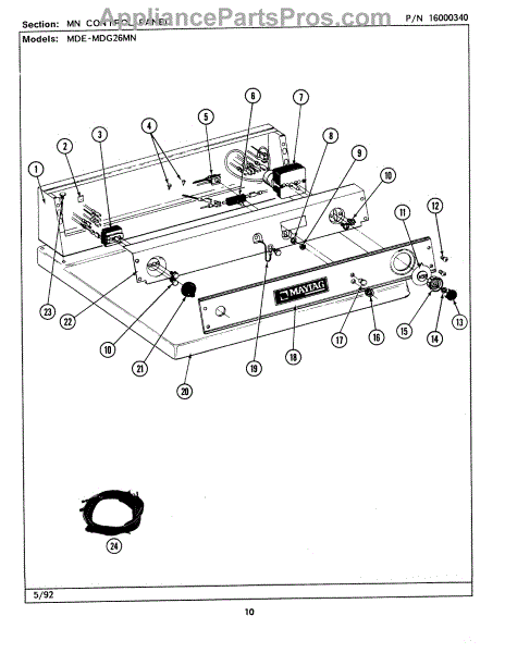 Parts for Maytag MDE26MNAGG: 03 - Mn Control Panel Parts
