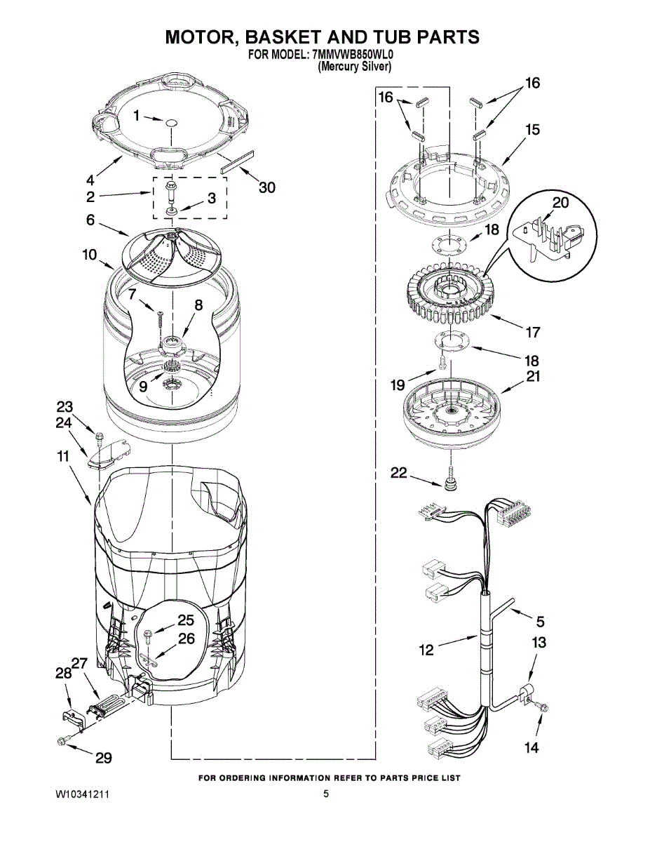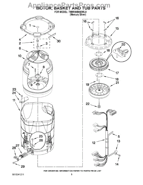 Outer tub assembly includes: outer tub, tub seal, drive shaft and bearings. To rebuild the tub, order the bearing and tub seal kit W10435302 and the bearing installation tool W10447783.