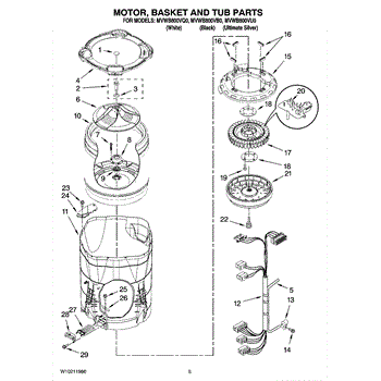 Outer tub assembly includes: outer tub, tub seal, drive shaft and bearings. To rebuild the tub, order the bearing and tub seal kit W10435302 and the bearing installation tool W10447783.