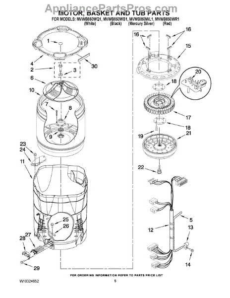 Outer tub assembly includes: outer tub, tub seal, drive shaft and bearings. To rebuild the tub, order the bearing and tub seal kit W10435302 and the bearing installation tool W10447783.