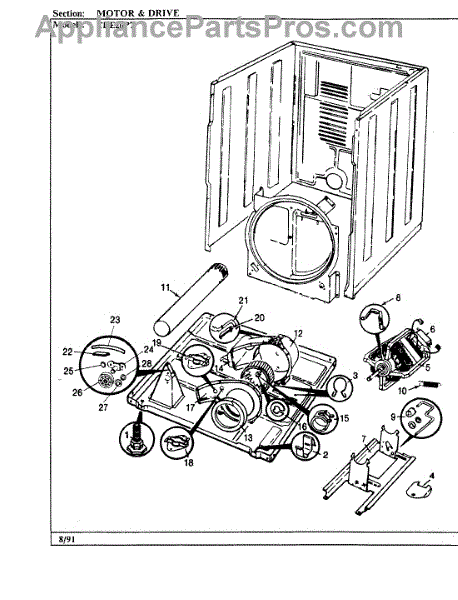 This dryer exhaust fan is used on some Admiral, Crosley, Hoover, Magic Chef, Maytag, Montgomery Ward and Norge brands. Size: 3-1/8 inches deep, 7 1/2 inch fin diameter, 6 3/4 inch hub diameter, 20 standard fins, 1/2 inch diameter motor shaft, 7/16 inch diameter motor shaft to flat side of shaft. Blower wheel clamp not included. For the clamp order 25-7855.
