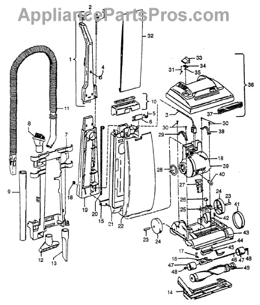Parts for Hoover U5068900: 03 - Motor, Handle, Hose, Mainbody Parts