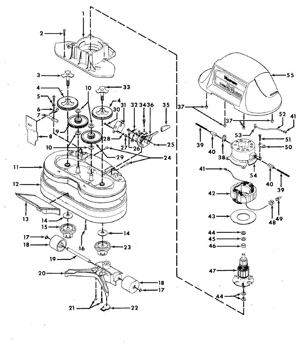 Parts for Hoover F4323---: 03 - Motor, Hood, Brushcarriers, Gears Parts