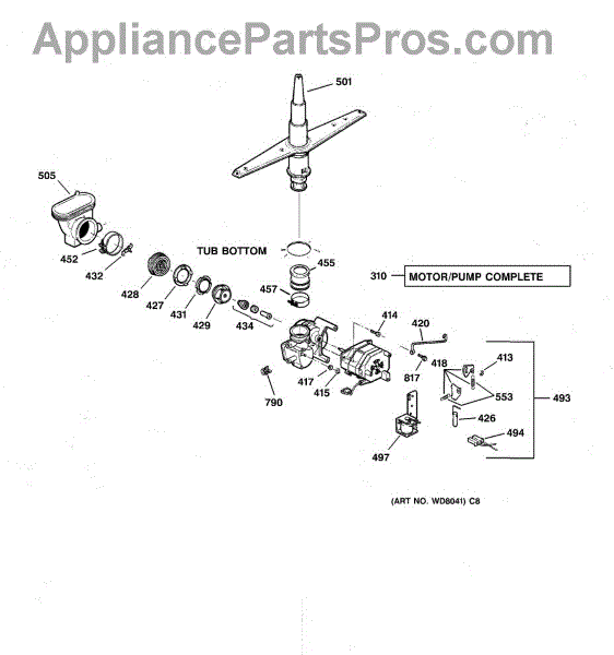 This kit is used to repair a leaking pump on GE made dishwashers. For a complete pump/motor assembly get WD26X10013.