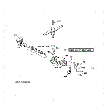 The spray arm assembly distributes pressurized wash water through its jets and rotates to clean dishes. If it's cracked, clogged, or not turning freely, replacing it restores proper spray coverage and cleaning performance.