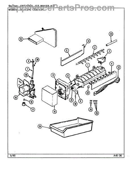 Parts for Magic Chef RB212PW / DD75B: 03 - Optional Ice Maker Kit Parts