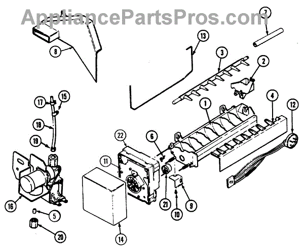This replacement ejector is the plastic arm that pushes harvested ice cubes out of the ice mold and into the storage bin, helping restore proper ice ejection and reduce ice that sticks inside the tray. What it does:
