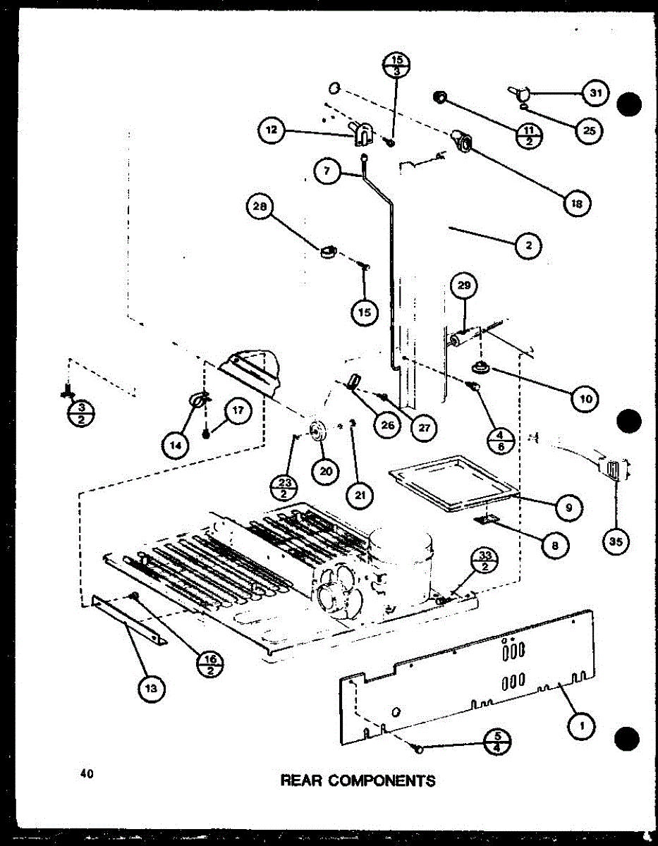 This factory screw secures appliance components to their mounting points. Replace missing, worn, or stripped hardware to restore a tight fit, proper alignment, and quieter operation across the affected assembly.