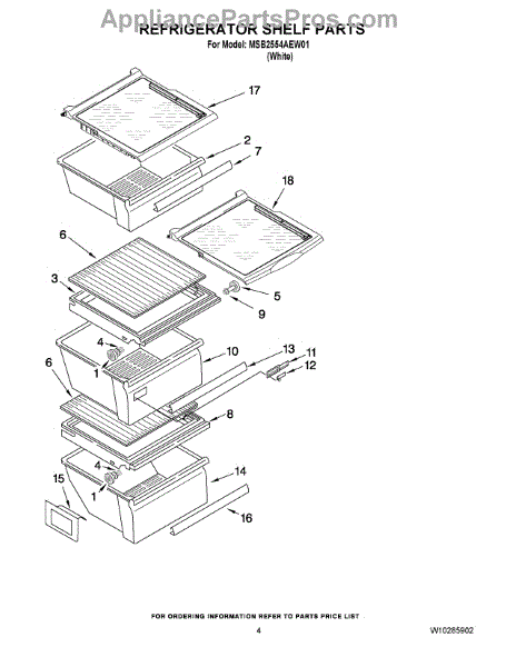 Causes of a bad shelf can be normal wear and tear over time from repeated removal and washing. Accidental drops or impact damage may also affect structural integrity. This OEM Whirlpool part can also be used on Maytag, KitchenAid, Jenn-Air, Amana, Magic Chef, Admiral, Norge, Roper, and Kenmore/Sears brand appliances.