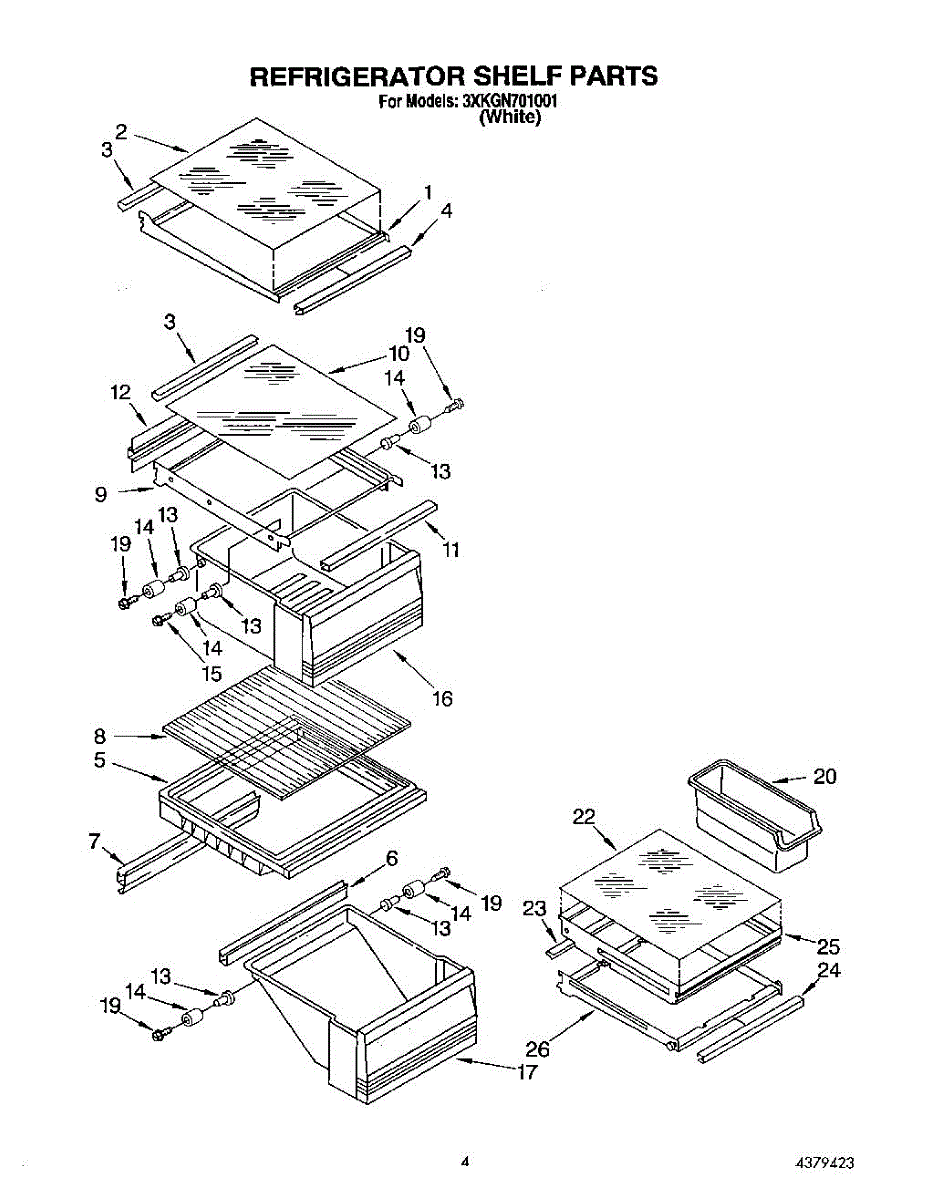 Parts for Whirlpool 3XKGN701001: 03 - Refrigerator Shelf Parts