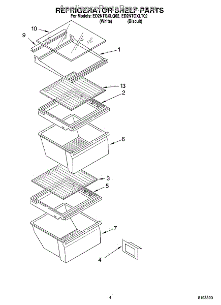 Parts for Whirlpool ED2NTGXLQ02: 03 - Refrigerator Shelf Parts