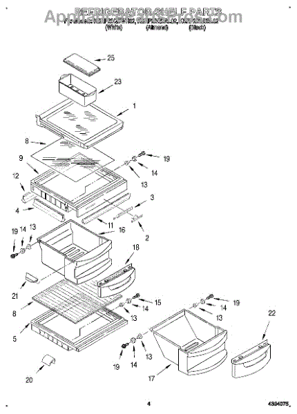 Parts for Kitchenaid KSRP22QDBL02: 03 - Refrigerator Shelf Parts