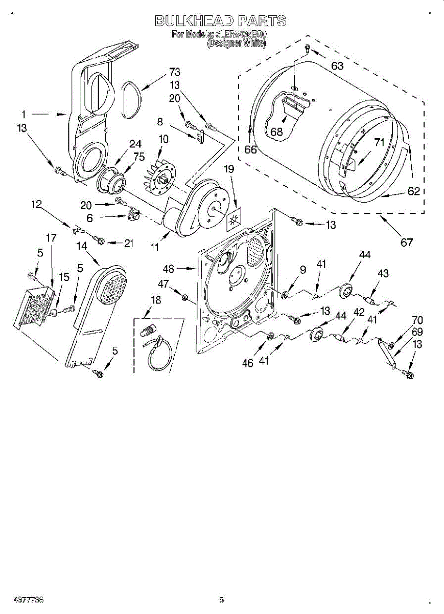 This bulkhead is the front tub housing that supports the washer drum and seals the washer cabinet to help contain water. Replaces a cracked or corroded housing to restore proper drum alignment and help prevent leaks. What it does: