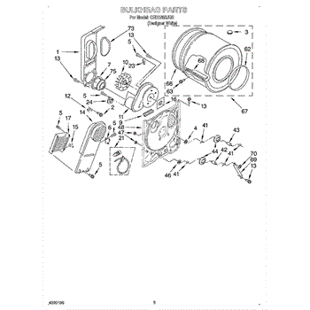 This blower housing assembly directs airflow from the dryer's drum to the exhaust, helping the appliance vent properly for efficient drying. It replaces a damaged or cracked housing to restore correct air path and reduce airflow loss. What it does: