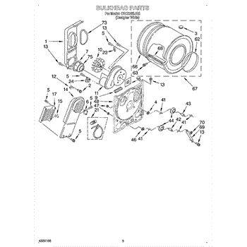 This blower housing assembly directs airflow from the dryer's drum to the exhaust, helping the appliance vent properly for efficient drying. It replaces a damaged or cracked housing to restore correct air path and reduce airflow loss. What it does: