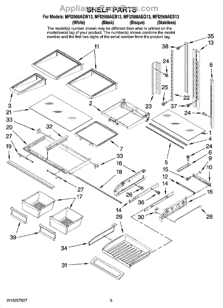 Parts for Maytag MFI2568AES13: 03 - Shelf Parts