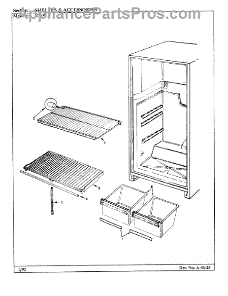 The crisper shelf center support stabilizes the pan cover above the crisper drawers to keep it level under load. Replace a cracked or missing support to restore proper shelf alignment and smooth crisper drawer operation.