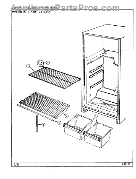 The crisper shelf center support stabilizes the pan cover above the crisper drawers to keep it level under load. Replace a cracked or missing support to restore proper shelf alignment and smooth crisper drawer operation.