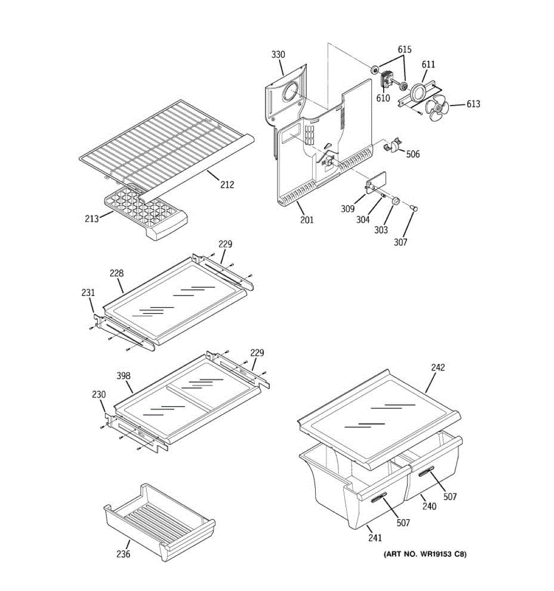 Parts for Ge HTS18GBNAWW: 03 - Shelves Parts