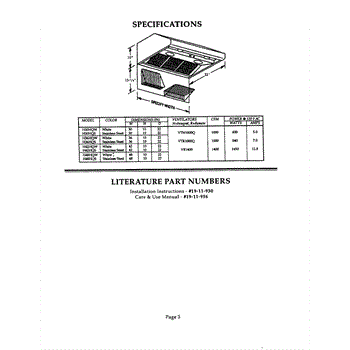 Parts for Thermador H30HQS: 03 - Specifications & Literature Parts