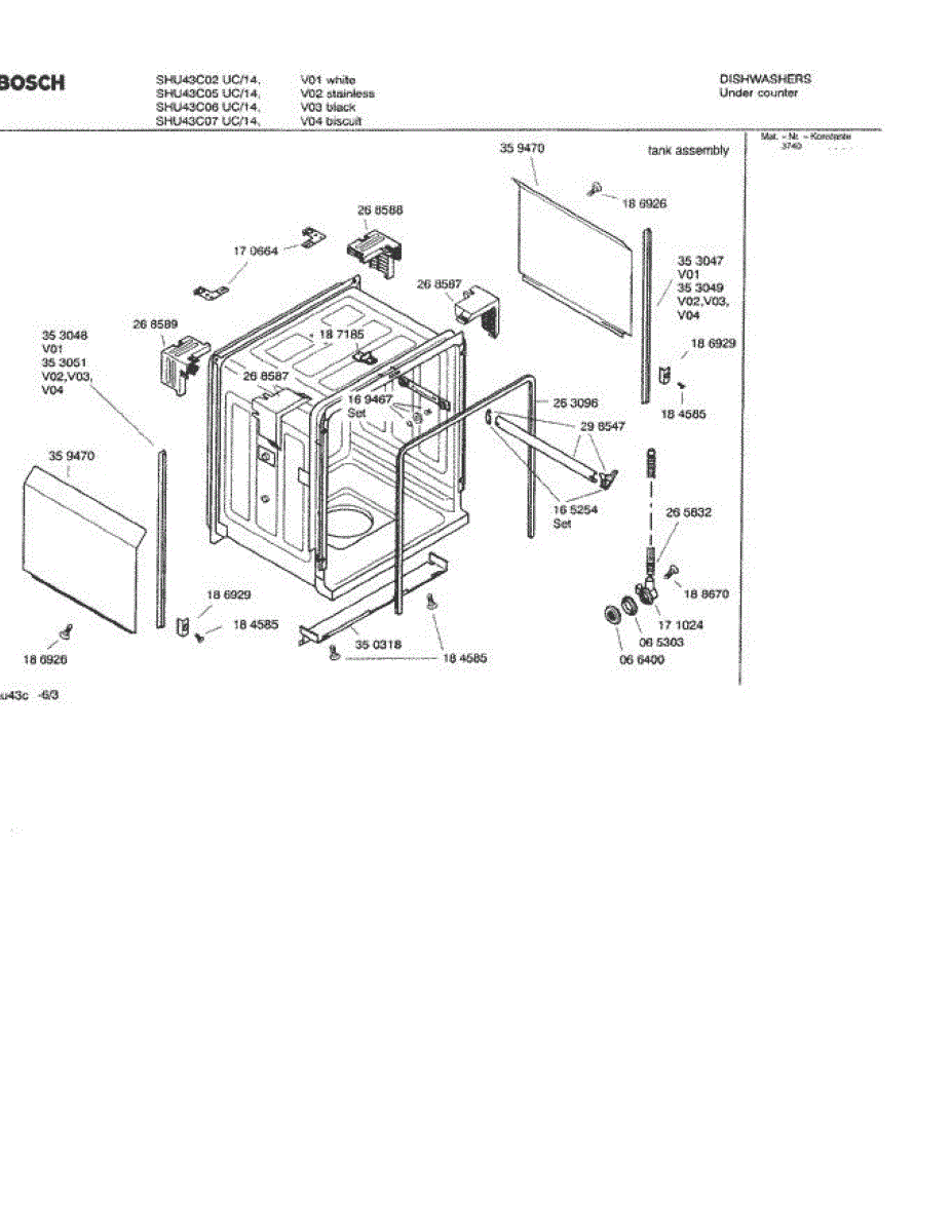The Mounting Bracket Set is an OEM replacement part for Bosch dishwashers. Comprised of heavy-duty brackets and mounting fasteners, this set securely anchors the dishwasher to surrounding cabinetry. Causes involve normal stress and fatigue of mounting points from years of use, and cycles of expansion and contraction. Symptoms of faulty or damaged mounting brackets include: