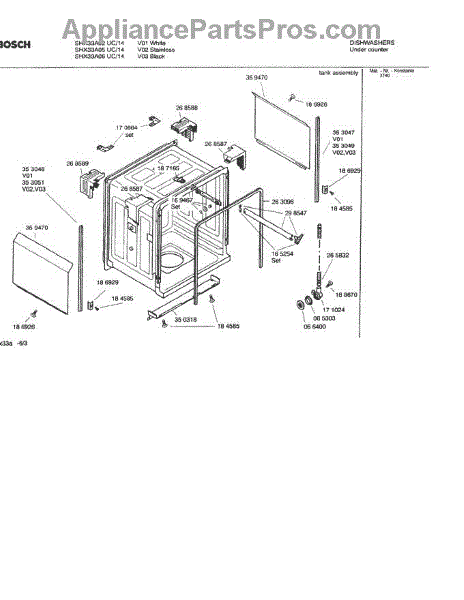 The Mounting Bracket Set is an OEM replacement part for Bosch dishwashers. Comprised of heavy-duty brackets and mounting fasteners, this set securely anchors the dishwasher to surrounding cabinetry. Causes involve normal stress and fatigue of mounting points from years of use, and cycles of expansion and contraction. Symptoms of faulty or damaged mounting brackets include:
