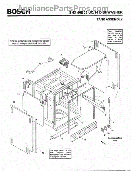 Parts for Bosch SHX56B05 UC/14 (FD 8211-): 03 - Tank Assembly Parts