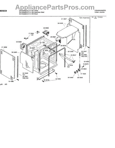 The Mounting Bracket Set is an OEM replacement part for Bosch dishwashers. Comprised of heavy-duty brackets and mounting fasteners, this set securely anchors the dishwasher to surrounding cabinetry. Causes involve normal stress and fatigue of mounting points from years of use, and cycles of expansion and contraction. Symptoms of faulty or damaged mounting brackets include: