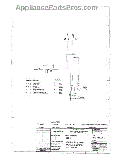 Parts for Gaggenau VG353-112: 03 - Tech Wiring Diagram Parts