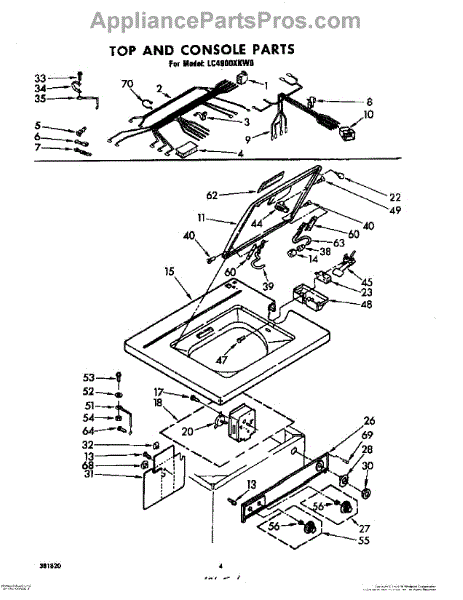 This protective cover for the washer's lid switch area guards the switch and wiring from water, detergent, and snagging inside the top panel, supporting reliable lid-closed detection and long-term safety interlock performance.