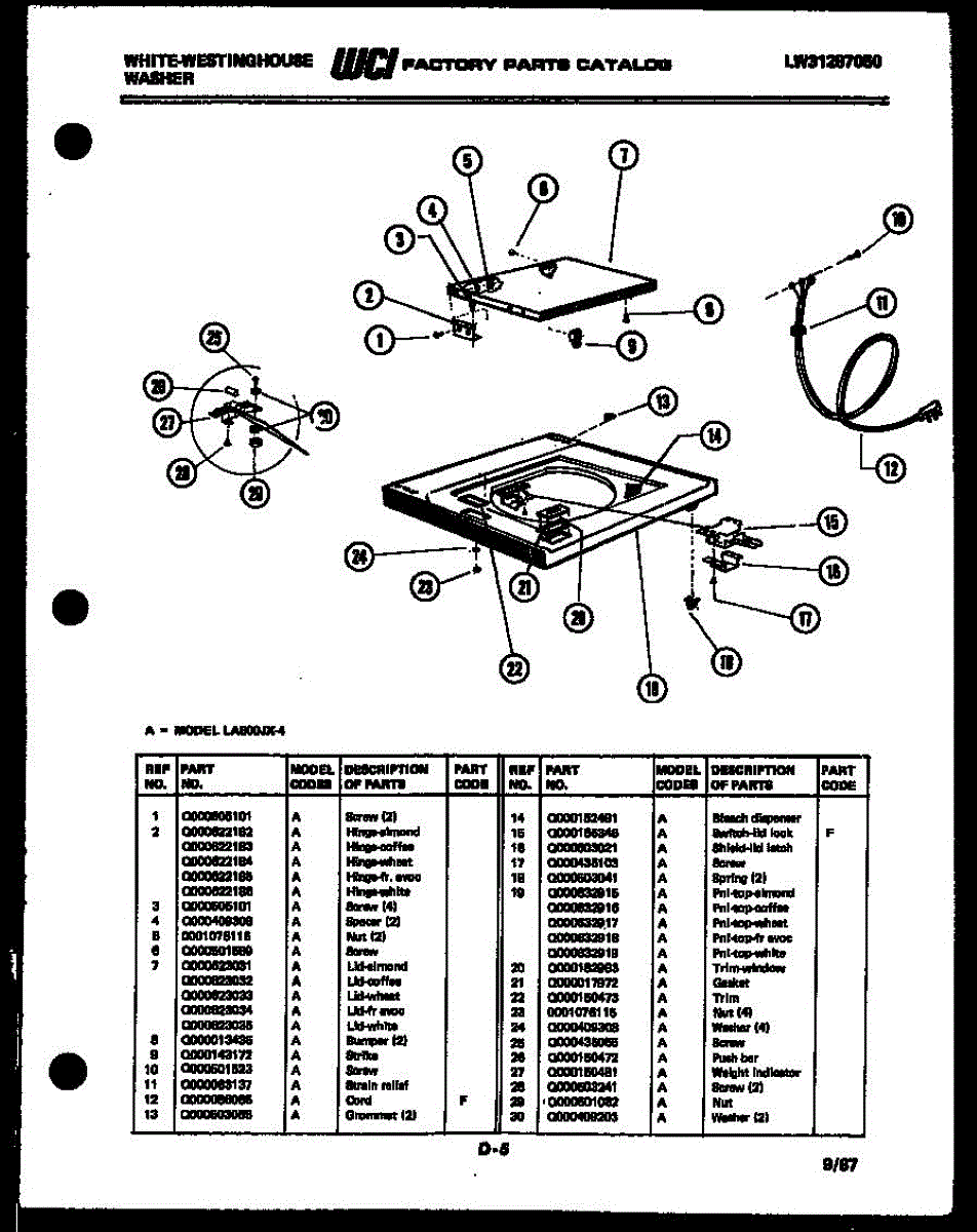 Parts for Frigidaire LA800JXW4: 03 - Top And Miscellaneous Parts