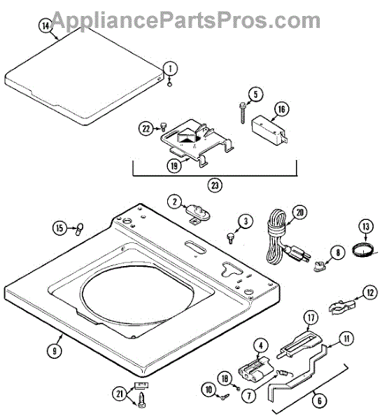 This factory screw secures appliance components to their mounting points. Replace missing, worn, or stripped hardware to restore a tight fit, proper alignment, and quieter operation across the affected assembly.