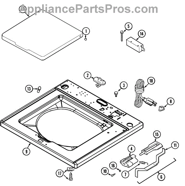 This lid bumper cushions the contact point between a washer lid and the top panel to reduce slamming noise and protect the finish. Replacing a worn or missing bumper restores smooth, quiet lid operation and helps prevent paint damage.