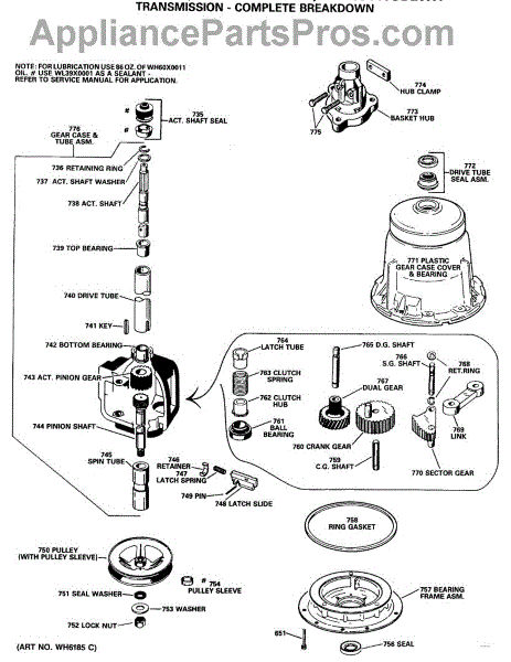 Parts for Ge WLW3400SBLAD: 03 - Transmission - Complete Breakdown Parts